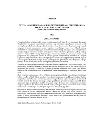 JOHAN , CIPTADI (2026) OPTIMALISASI PENEGAKAN HUKUM TINDAK PIDANA PERTAMBANGAN TIMAH ILEGAL DIKAWASAN PANTAI (Studi Di Kabupaten Bangka Barat). Masters thesis, UNIVERSITAS LAMPUNG.