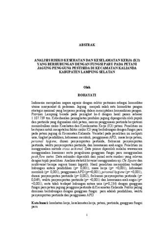 ROHAYATI, ROHAYATI (2026) ANALISIS RISIKO KESEHATAN DAN KESELAMATAN KERJA (K3) YANG BERHUBUNGAN DENGAN FUNGSI PARU PADA PETANI JAGUNG PENGGUNA PESTISIDA DI KECAMATAN KALIANDA KABUPATEN LAMPUNG SELATAN. Masters thesis, UNIVERSITAS LAMPUNG.