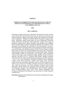 KEBIJAKAN PEMERINTAH DAERAH KABUPATEN LAMPUNG BARAT DALAM PENGELOLAN SAMPAH RUMAH TANGGA YANG BERKELANJUTAN