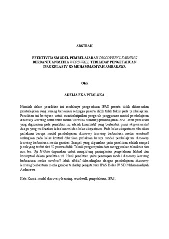 ADELIA , EKA PITALOKA (2025) EFEKTIVITAS MODEL PEMBELAJARAN DISCOVERY LEARNING BERBANTUAN MEDIA WORDWALL TERHADAP PENGETAHUAN IPAS KELAS IV SD MUHAMMADIYAH AMBARAWA. FAKULTAS KEGURUAN DAN ILMU PENDIDIKAN , UNIVERSITAS LAMPUNG.