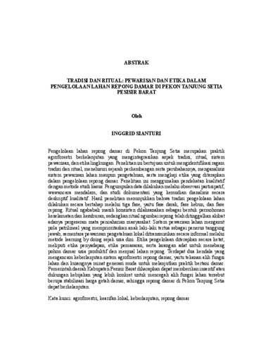 Inggrid , Sianturi (2026) TRADISI DAN RITUAL: PEWARISAN DAN ETIKA DALAM PENGELOLAAN LAHAN REPONG DAMAR DI PEKON TANJUNG SETIA PESISIR BARAT. FAKULTAS PERTANIAN, UNIVERSITAS LAMPUNG.