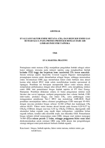 EVALUASI FAKTOR EMISI METANA (CH4) DAN REDUKSI EMISI GAS RUMAH KACA PADA PROSES PRODUKSI BIOGAS DARI AIR LIMBAH INDUSTRI TAPIOKA