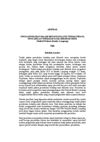 Salsabila , Azzahra (2026) UPAYA KEPOLISIAN DALAM MENANGGULANGI TINDAK PIDANA PENCABULAN TERHADAP ANAK DIBAWAH UMUR (Studi di Polresta Bandar Lampung). FAKULTAS HUKUM , UNIVERSITAS LAMPUNG.