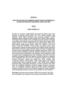 Penelitian ini bertujuan mengidentifikasi determinan kemiskinan pada sektor pertanian di Indonesia selama periode 2015–2024. Variabel dependen yang digunakan adalah tingkat kemiskinan sektor pertanian, sedangkan variabel independen meliputi Produk Domestik Regional Bruto (PDRB) sektor pertanian, Nilai Tukar Petani, pendidikan, serta usia tenaga kerja sektor pertanian. Penelitian memanfaatkan data sekunder yang bersumber dari Badan Pusat Statistik (BPS) dengan cakupan 34 provinsi. Pendekatan empiris yang diterapkan adalah model panel dinamis, dengan metode estimasi terpilih First Difference Generalized Method of Moments (FDGMM). Temuan empiris menunjukkan bahwa, dalam jangka pendek, dinamika kemiskinan ditandai oleh pengaruh kondisi kemiskinan pada periode sebelumnya yang berkorelasi dengan penurunan kemiskinan pada periode berjalan, mengindikasikan adanya mekanisme penyesuaian. PDRB sektor pertanian terbukti berpengaruh positif dan signifikan terhadap kemiskinan, yang mencerminkan bahwa pertumbuhan sektor pertanian belum sepenuhnya inklusif dan belum merata menjangkau petani kecil. Sebaliknya, Nilai Tukar Petani dan pendidikan berpengaruh negatif dan signifikan terhadap kemiskinan, menegaskan peran peningkatan daya beli petani serta penguatan kapasitas manusia dalam menekan kemiskinan. Adapun usia tenaga kerja sektor pertanian tidak menunjukkan pengaruh yang signifikan. Dalam jangka panjang, arah pengaruh variabel-variabel utama cenderung konsisten, yaitu PDRB sektor pertanian berkorelasi dengan peningkatan kemiskinan, sementara perbaikan Nilai Tukar Petani dan peningkatan pendidikan berkorelasi dengan penurunan kemiskinan. Hasil ini menegaskan pentingnya agenda pemerataan manfaat pertumbuhan, penguatan kesejahteraan petani, serta kebijakan peningkatan kualitas pendidikan untuk mendukung penurunan kemiskinan sektor pertanian secara berkelanjutan. Kata kunci: kemiskinan sektor pertanian, PDRB Sektor pertanian, Nilai Tukar Petani, pendidikan, usia tenaga kerja sektor pertanian, panel dinamis, FDGMM.