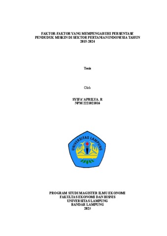 SYIFA’ , APRILYA. R (2025) FAKTOR-FAKTOR YANG MEMPENGARUHI PERSENTASE PENDUDUK MISKIN DI SEKTOR PERTANIAN INDONESIA TAHUN 2015-2024. Masters thesis, UNIVERSITAS LAMPUNG.