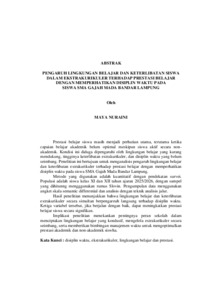 Maya , Nuraini (2026) PENGARUH LINGKUNGAN BELAJAR DAN KETERLIBATAN SISWA DALAM EKSTRAKURIKULER TERHADAP PRESTASI BELAJAR DENGAN MEMPERHATIKAN DISIPLIN WAKTU PADA SISWA SMA GAJAH MADA BANDAR LAMPUNG. FAKULTAS KEGURUAN DAN ILMU PENDIDIKAN, UNIVERSITAS LAMPUNG.