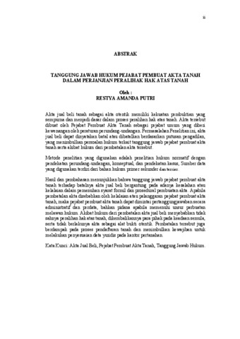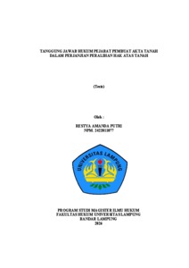 Restya, Amanda Putri (2026) TANGGUNG JAWAB HUKUM PEJABAT PEMBUAT AKTA TANAH DALAM PERJANJIAN PERALIHAK HAK ATAS TANAH. Masters thesis, Universitas Lampung.