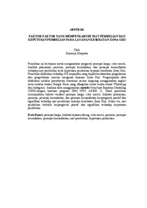 Penelitian ini bertujuan untuk menganalisis pengaruh persepsi harga, citra merek, kualitas pelayanan, promosi, persepsi kemudahan, dan persepsi kemanfaatan terhadap niat pembelian serta keputusan pembelian layanan kesehatan Zona Gizi. Penelitian dilakukan terhadap 358 responden yang dipilih berdasarkan pengalaman dan pengetahuan mereka mengenai layanan Zona Gizi. Pengumpulan data dilakukan melalui penyebaran kuesioner secara langsung menggunakan angket serta melalui tautan Google Form yang dibagikan lewat media sosial WhatsApp dan Instagram. Analisis data menggunakan metode Structural Equation Modeling (SEM) dengan bantuan program IBM SPSS AMOS 21. Hasil penelitian menunjukkan bahwa variabel persepsi harga, citra merek, kualitas pelayanan, promosi, persepsi kemudahan, dan persepsi kemanfaatan berpengaruh positif dan signifikan terhadap niat pembelian layanan kesehatan Zona Gizi. Selain itu, niat pembelian terbukti berpengaruh positif dan signifikan terhadap keputusan pembelian. Kata Kunci: persepsi harga, kualitas layanan daring, citra merek, promosi, persepsi kemudahan, persepsi kemanfaatan, niat pembelian, keputusan pembelian. This study examines the factors that influence purchase intention and purchase decision in the context of Zona Gizi health services. Specifically, it investigates the effects of price perception, brand image, service quality, promotion, perceived ease of use, and perceived usefulness on consumers’ purchase intention, as well as the effect of purchase intention on purchase decision. A total of 358 respondents with prior experience and knowledge of Zona Gizi services participated in the study. Data were collected through questionnaires distributed both offline and online via Google Forms shared on WhatsApp and Instagram. The data were analyzed using Structural Equation Modeling (SEM) with IBM SPSS AMOS 21. The results reveal that all independent variables—price perception, brand image, service quality, promotion, perceived ease of use, and perceived usefulness—have a positive and significant impact on purchase intention. Furthermore, purchase intention is found to have a positive and significant effect on purchase decision. These findings highlight the importance of both functional and psychological factors in shaping consumer behavior toward health services. The study provides practical implications for healthcare service providers in designing effective marketing strategies to enhance consumer intention and decision-making. Keywords: price perception, brand image, service quality, promotion, perceived ease of use, perceived usefulness, purchase intention, purchase decision.