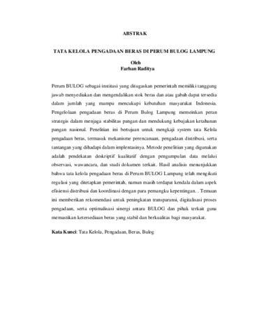 Farhan , Raditya (2025) TATA KELOLA PENGADAAN BERAS DI PERUM BULOG LAMPUNG. [Diploma/Tugas Akhir]