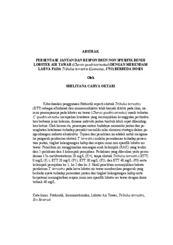 SHELIYANA , CAHYA OKTARI (2025) PERSENTASE JANTAN DAN RESPON IMUN NON SPESIFIK BENIH LOBSTER AIR TAWAR (Cherax quadricarinatus) DENGAN MERENDAM LARVA PADA Tribulus terrestris (Linneaus, 1753) BERBEDA DOSIS. FAKULTAS PERTANIAN, UNIVERSITAS LAMPUNG.