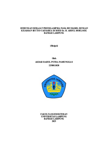 Akbar Rahul Putra , Pamungkas (2025) HUBUNGAN DERAJAT PREEKLAMPSIA PADA IBU HAMIL DENGAN KEJADIAN SECTIO CAESAREA DI RSUD Dr. H. ABDUL MOELOEK BANDAR LAMPUNG. FAKULTAS KEDOKTERAN, UNIVERSITAS LAMPUNG.