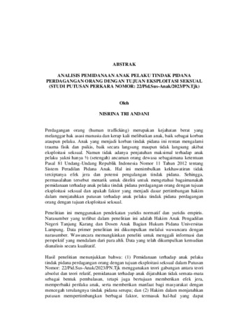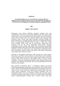 NISRINA TRI , ANDANI (2026) ANALISIS PEMIDANAAN ANAK PELAKU TINDAK PIDANA PERDAGANGAN ORANG DENGAN TUJUAN EKSPLOITASI SEKSUAL (Studi Putusan Perkara Nomor: 22/Pid.Sus-Anak/2023/PN.Tjk). FAKULTAS HUKUM , UNIVERSITAS LAMPUNG.