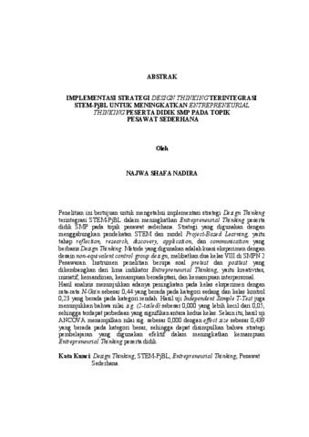 NAJWA , SHAFA NADIRA (2025) IMPLEMENTASI STRATEGI DESIGN THINKING TERINTEGRASI STEM-PjBL UNTUK MENINGKATKAN ENTREPRENEURIAL THINKING PESERTA DIDIK SMP PADA TOPIK PESAWAT SEDERHANA. FAKULTAS KEGURUAN DAN ILMU PENDIDIKAN , UNIVERSITAS LAMPUNG.