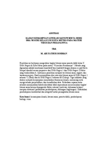M. ABI , FATHUR ROHMAN (2025) KAJIAN KEMAMPUAN LITERASI SAINS PESERTA DIDIK SMA NEGERI KELAS X DI KOTA METRO PADA MATERI VIRUS DAN PERANANNYA. FAKULTAS KEGURUAN DAN ILMU PENDIDIKAN , UNIVERSITAS LAMPUNG.