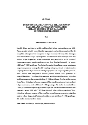 HUBUNGAN MINAT DAN MOTIVASI BELAJAR DENGAN HASIL BELAJAR MATEMATIKA PESERTA DIDIK KELAS V SD NEGERI GUGUS R.A KARTINI KECAMATAN METRO TIMUR