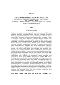 Salah satu provinsi di Indonesia yang masih terdapat kemiskinan adalah Provinsi Lampung. Kabupaten Tanggamus sebagai salah satu Kabupaten di Provinsi Lampung yang memiliki persentase penduduk miskin bersifat fluktuatif tetapi 3 tahun terakhir mengalami penurunan. Desa Sukanegeri Jaya merupakan wilayah di Kecamatan Talang Padang, Kabupaten Tanggamus, Provinsi Lampung, yang mengalami permasalahan kemiskinan akibat kurangnya lahan pertanian yang menjadikan warga lebih banyak menjadi buruh tani dan kebijakan pemberian Bantuan Langsung Tunai Dana Desa (Blt Dd) selama pandemi COVID-19 membuat masyarakat ketergantungan. Penelitian ini dilakukan dengan tujuan untuk mengetahui upaya pemerintah desa dalam menanggulangi kemiskinan berbasis pemberdayaan masyarakat melalui dana desa yang diperoleh, kendala- kendala yang terjadi, serta dampak yang dirasakan oleh masyarakat yang tergabung dalam pemberyaan tersebut. Metode penelitian yang digunakan adalah kualitatif dengan melakukan wawancara semi terstruktur kepada pemerintah desa, pengurus BUMDes, pengurus PKK, unit-unit mitra BUMDes, serta anggota PKK. Pengumpulan data menggunakan observasi, wawancara semi tersruktur, dan dokumentasi. Hasil penelitian ini menunjukkan bahwa pemerintah desa menyuntikkan modal kepada BUMDes dan mendanai pelatihan PKK sebagai bentuk pemberdayaan. Kendala utama yang dihadapi meliputi pemasaran yang belum optimal, pengembalian modal yang lambat, pola pikir masyarakat, dan keterbatasan bahan baku. Meskipun demikian, program ini berdampak positif dalam membuka akses permodalan, meningkatkan pendapatan, dan menambah keterampilan warga. Kesimpulannya, program pemberdayaan masyarakat di Desa Sukanegeri Jaya telah memberikan dasar yang kuat untuk mengatasi kemiskinan. Disarankan untuk pemerintah desa memberikan pelatihan pemasaran digital yang lebih intensif kepada masyarakat, masyarakat lebih memanfaatkan pelatihan yang diadakan oleh pemerintah desa, serta untuk penelitian selanjutnya dapat membahas lebih kompleks dari penelitian ini. Kata kunci: Usaha Lokal, BLT DD, Se’at Jaya, BUMDes, PKK Lampung Province remains among the regions in Indonesia experiencing persistent poverty. Tanggamus Regency has shown fluctuating poverty rates, although a downward trend has occurred in the last three years. Sukanegeri Jaya Village, located in Talang Padang Subdistrict, Tanggamus Regency, is one of the areas still struggling with poverty due to limited agricultural land. This condition causes most residents to work as agricultural laborers. Moreover, the distribution of Village Fund Direct Cash Assistance (BLT DD) during the COVID-19 pandemic has increased the community‟s dependency on aid. This study aims to examine the village government‟s efforts in alleviating poverty through community empowerment programs funded by village funds, identify the challenges faced in implementing these programs, and analyze the perceived impacts on beneficiaries. The study employs a qualitative research method using semi-structured interviews, observation, and documentation. Informants include village officials, administrators of Village-Owned Enterprises (BUMDes), members of the Family Welfare Empowerment (PKK) team, and business unit partners. Findings reveal that the village government has allocated capital to BUMDes and financed PKK training programs to enhance local skills and economic opportunities. Challenges encountered include suboptimal marketing, slow capital turnover, limited raw materials, and mindset barriers among the population. Despite these challenges, the programs have had positive impacts, such as improved access to capital, increased household income, and enhanced community capacity. In conclusion, community empowerment initiatives in Sukanegeri Jaya Village have laid a solid foundation for sustainable poverty alleviation. It is recommended that the village government intensify digital marketing training, encourage stronger participation from the community, and that future research explore broader aspects of rural poverty reduction. Keywords: Local Enterprise, BLT DD, Se’at Jaya, BUMDes, PKK