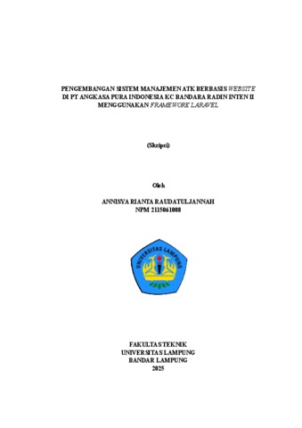 PENGEMBANGAN SISTEM MANAJEMEN ATK BERBASIS WEBSITE DI PT ANGKASA PURA INDONESIA KC BANDARA RADIN INTEN II MENGGUNAKAN FRAMEWORK LARAVEL