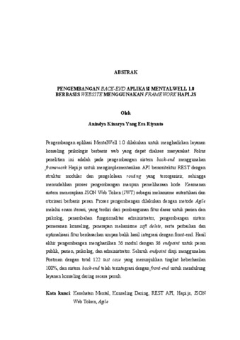 Pengembangan aplikasi MentalWell 1.0 dilakukan untuk menghadirkan layanan konseling psikologis berbasis web yang dapat diakses masyarakat. Fokus penelitian ini adalah pada pengembangan sistem back-end menggunakan framework Hapi.js untuk mengimplementasikan API berarsitektur REST dengan struktur modular dan pengelolaan routing yang terorganisir, sehingga memudahkan proses pengembangan maupun pemeliharaan kode. Keamanan sistem menerapkan JSON Web Token (JWT) sebagai mekanisme autentikasi dan otorisasi berbasis peran. Proses pengembangan dilakukan dengan metode Agile melalui enam iterasi, yang terdiri dari pembangunan fitur dasar untuk pasien dan psikolog, penambahan fungsionalitas administrator, pengembangan sistem pemesanan konseling, penerapan mekanisme soft delete, serta perbaikan dan optimalisasi fitur berdasarkan umpan balik hasil integrasi dengan front-end. Hasil akhir pengembangan menghasilkan 56 modul dengan 36 endpoint untuk peran publik, pasien, psikolog, dan administrator. Seluruh endpoint diuji menggunakan Postman dengan total 122 test case yang menunjukkan tingkat keberhasilan 100%, dan sistem back-end telah terintegrasi dengan front-end untuk mendukung layanan konseling daring secara penuh. Kata kunci: Kesehatan Mental, Konseling Daring, REST API, Hapi.js, JSON Web Token, Agile The development of MentalWell 1.0 was carried out to provide accessible web- based psychological counseling services for the public. This research focuses on the back-end system development using the Hapi.js framework to implement a REST-architectured API with a modular structure and organized routing management, thereby facilitating both development and maintenance processes. Security is ensured through the application of JSON Web Token (JWT) as the mechanism for role-based authentication and authorization.. The development process was conducted using the Agile method through six iterations, consisting of building basic features for patients and psychologists, adding administrator functionalities, developing the counseling booking system, implementing the soft delete mechanism, as well as improving and optimizing features based on feedback from front-end integration. The final outcome produced 56 modules with 36 endpoints for public, patient, psychologist, and administrator roles. All endpoints were tested using Postman with a total of 122 test cases that achieved a 100% success rate, and the back-end system has been fully integrated with the front-end to support online counseling services. Keywords: Mental Health, Online Counseling, REST API, Hapi.js, JSON Web Token, Agile