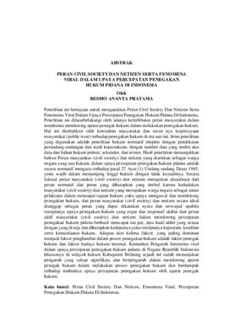 REDHO ANANTA , PRATAMA (2026) PERAN CIVIL SOCIETY DAN NETIZEN SERTA FENOMENA VIRAL DALAM UPAYA PERCEPATAN PENEGAKAN HUKUM PIDANA DI INDONESIA. Masters thesis, UNIVERSITAS LAMPUNG.