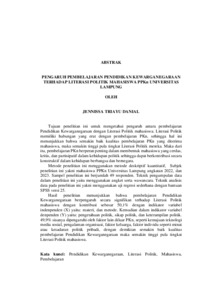 JENNISSA , TRIAYU DANIAL (2025) PENGARUH PEMBELAJARAN PENDIDIKAN KEWARGANEGARAAN TERHADAP LITERASI POLITIK MAHASISWA PPKn FKIP UNIVERSITAS LAMPUNG. FAKULTAS KEGURUAN DAN ILMU PENDIDIKAN, UNIVERSITAS LAMPUNG.