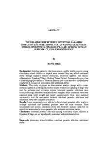 Siti Nur, Alfiah (2026) HUBUNGAN INFEKSI PARASIT USUS DENGAN STATUS GIZI PADA SISWA/SISWI SEKOLAH DASAR DI DESA CIPADANG KECAMATAN GEDONG TATAAN KABUPATEN PESAWARAN. FAKUTAS KEDOKTERAN, UNIVERSITAS LAMPUNG.