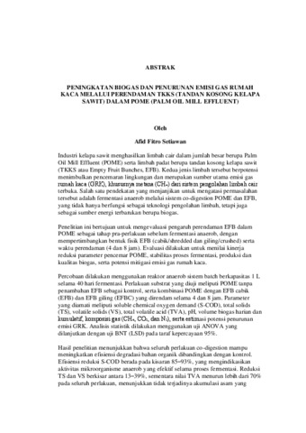 AFID FITRO, SETIAWAN (2026) PENINGKATAN BIOGAS DAN PENURUNAN EMISI GAS RUMAH KACA MELALUI PERENDAMAN TKKS (TANDAN KOSONG KELAPA SAWIT) DALAM POME (PALM OIL MILL EFFLUENT). Masters thesis, UNIVERSITAS LAMPUNG.