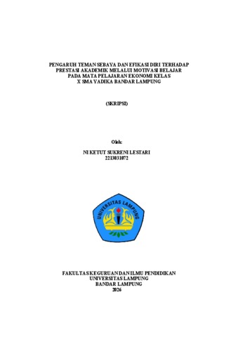NI KETUT SUKRENI , LESTARI (2026) PENGARUH TEMAN SEBAYA DAN EFIKASI DIRI TERHADAP PRESTASI AKADEMIK MELALUI MOTIVASI BELAJAR PADA MATA PELAJARAN EKONOMI KELAS X SMA YADIKA BANDAR LAMPUNG. FAKULTAS KEGURUAN DAN ILMU PENDIDIKAN, UNIVERSITAS LAMPUNG. (Submitted)