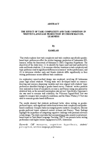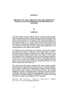 KAMILAH, . (2026) THE EFFECT OF TASK COMPLEXITY AND TASK CONDITION IN WRITTEN LANGUAGE PRODUCTION BY INDONESIAN EFL LEARNERS. Masters thesis, UNIVERSITAS LAMPUNG.
