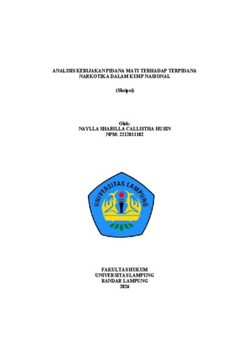 NAYLLA SHABILLA CALLISTHA , HUSIN (2026) ANALISIS KEBIJAKAN PIDANA MATI TERHADAP TERPIDANA KASUS NARKOTIKA DALAM KUHP NASIONAL. FAKULTAS HUKUM, UNIVERSITAS LAMPUNG.