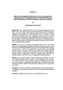 HUBUNGAN TINGKAT NYERI DENGAN DERAJAT KELAINAN RADIOLOGIS PADA PASIEN OSTEOARTHRITIS LUTUT DI RUMAH SAKIT ADVENT BANDAR LAMPUNG