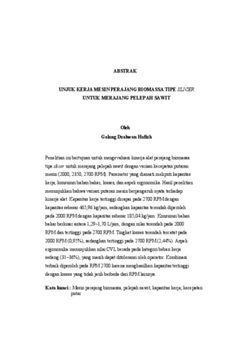 GALANG, DZAKWAN HAFIZH (2025) UNJUK KERJA MESIN PERAJANG BIOMASSA TIPE SLICER UNTUK MERAJANG PELEPAH SAWIT. FAKULTAS PERTANIAN, UNIVERSITAS LAMPUNG.