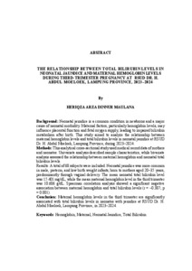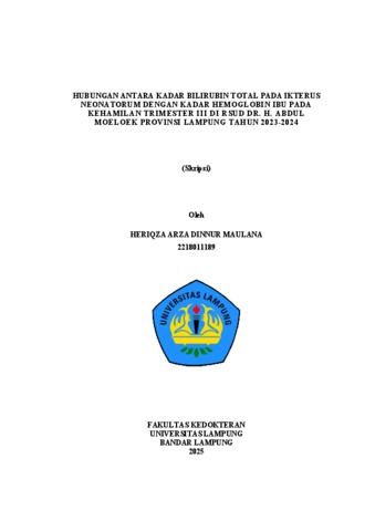 DINNUR MAULANA, HERIQZA ARZA (2025) HUBUNGAN ANTARA KADAR BILIRUBIN TOTAL PADA IKTERUS NEONATORUM DENGAN KADAR HEMOGLOBIN IBU PADA KEHAMILAN TRIMESTER III DI RSUD DR. H. ABDUL MOELOEK PROVINSI LAMPUNG TAHUN 2023-2024. FAKULTAS KEDOKTERAN, UNIVERSITAS LAMPUNG.