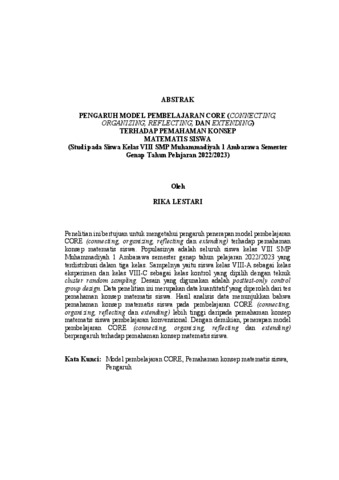 PENGARUH MODEL PEMBELAJARAN CORE (CONNECTING, ORGANIZING, REFLECTING, DAN EXTENDING) TERHADAP PEMAHAMAN KONSEP MATEMATIS SISWA THE EFFECT OF THE CORE (CONNECTING, ORGANIZING, REFLECTING, AND EXTENDING) LEARNING MODEL ON STUDENTS’ MATHEMATICAL CONCEPTUAL UNDERSTANDING