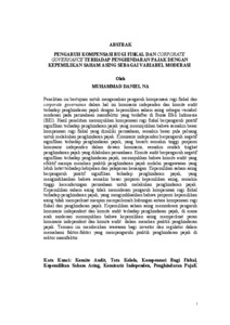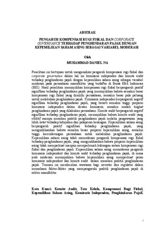 Penelitian ini bertujuan untuk menganalisis pengaruh kompensasi rugi fiskal dan corporate governance dalam hal ini komisaris independen dan komite audit terhadap penghindaran pajak dengan kepemilikan saham asing sebagai variabel moderasi pada perusahaan manufaktur yang terdaftar di Bursa Efek Indonesia (BEI). Hasil penelitian menunjukkan kompensasi rugi fiskal berpengaruh positif signifikan terhadap penghindaran pajak yang menunjukkan bahwa semakin besar kompensasi rugi fiskal yang dimiliki perusahaan, semakin besar pula peluang untuk melakukan penghindaran pajak. Komisaris independen berpengaruh negatif signifikan terhadap penghindaran pajak, yang berarti semakin tinggi proporsi komisaris independen dalam dewan komisaris, semakin rendah tingkat penghindaran pajak yang dilakukan perusahaan. Komite audit berpengaruh negatif signifikan terhadap penghindaran pajak, menunjukkan bahwa komite audit yang efektif mampu menekan praktik penghindaran pajak melalui pengawasan yang lebih ketat terhadap kebijakan dan pelaporan keuangan. Kepemilikan saham asing berpengaruh positif signifikan terhadap penghindaran pajak, yang mengindikasikan bahwa semakin besar proporsi kepemilikan asing, semakin tinggi kecenderungan perusahaan untuk melakukan penghindaran pajak. Kepemilikan saham asing tidak memoderasi pengaruh kompensasi rugi fiskal terhadap penghindaran pajak, yang mengindikasikan bahwa proporsi kepemilikan asing tidak memperkuat maupun memperlemah hubungan antara kompensasi rugi fiskal dan penghindaran pajak. Kepemilikan saham asing memoderasi pengaruh komisaris independent dan komite audit terhadap penghindaran pajak, di mana arah moderasi menunjukkan bahwa kepemilikan asing memperkuat peran komisaris independent dan komite audit dalam menekan praktik penghindaran pajak. Temuan ini memberikan wawasan bagi investor dan regulator dalam memahami faktor-faktor yang mempengaruhi praktik penghindaran pajak di sektor manufaktur.