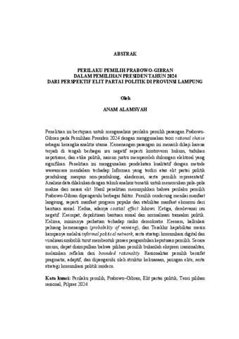 ANAM, ALAMSYAH (2026) PERILAKU PEMILIH PRABOWO GIBRAN DALAM PEMILIHAN PRESIDEN TAHUN 2024 DARI PERSPEKTIF ELIT PARTAI POLITIK DI PROVINSI LAMPUNG. Masters thesis, UNIVERSITAS LAMPUNG.