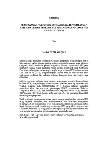 NANDA, PUTRI SAZQIAH (2026) PERANCANGAN FRAMEWORK ESTIMASI BIAYA PENGEMBANGAN SISTEM INFORMASI BERBASIS WEB MENGGUNAKAN METODE USE CASE POINTS (UCP). Masters thesis, UNIVERSITAS LAMPUNG.