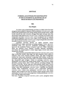 Isu hukum yang melatarbelakangi penelitian ini adalah terkait formulasi penegakan hukum pidana di Indonesia melalui pendekatan restorative justice yang masih bersifat parsial/sektoral oleh masing-masing instansi penegak hukum, sangat bersifat subjektif dan tidak terkontrol, sehingga tidak dapat mencapai tujuan dari penyelesaian tindak pidana secara restorative justice. Penelitian ini bertujuan untuk menganalisis penerapan restorative justice system di Indonesia saat ini termasuk menganalisa pengaturan restorative justice dalam KUHP Nasional dan KUHAP baru, urgensi adanya formulasi restorative justice yang terintegrasi dan menemukan formulasi integrated restorative justice system. Spesifikasi penetitian disertasi ini adalah penelitian hukum normatif/doktrinal dengan pendekatan perundang-undangan (statute approach), pendekatan kasus (case approach), pendekatan perbandingan (comparative approach) dan pendekatan konsep (conseptual approach). Bahan hukum/data diolah dan dianalisis secara kualitatif, kemudian dilakukan pembahasan, pemeriksaan dan pengelompokan ke dalam bagian-bagian tertentu untuk diolah menjadi data informasi. Hasil penelitian menunjukkan bahwa integrated restorative justice system dapat memberikan manfaat yang sangat luas bagi penegakan hukum pidana di Indonesia, selain untuk menjamin kepastian hukum, juga dapat meningkatkan keadilan dan kepercayaan masyarakat, mengurangi beban tahanan, memberikan kesempatan yang luas untuk para korban dalam memulihkan kembali keadaannya dan memperoleh ganti kerugian. Selama ini penerapan restorative justice dilaksanakan secara parsial oleh masing-masing instansi. Oleh karena itu, sangat dibutuhkan payung hukum dalam bentuk peraturan perundang-undangan dan Peraturan Pemerintah. Hal-hal yang perlu diformulasikan adalah seperti kriteria tindak pidana yang dapat dilakukan restorative justice, batasan ganti kerugian bagi korban, masa waktu pelaksanaan restorative justice, kualifikasi dan pelatihan mediator dalam melaksanakan restorative justice, pengecualian pelaksanaan restorative justice, hukum acara pelaksanaan restorative justice, dan adanya database yang terintegrasi satu sama lain diantara instansi penegak hukum terkait pelaksanaan restorative justice serta pengawasan terhadap pelaksanaan restorative justice disetiap tingkat pemeriksaan. Kata kunci: Formulasi, integrated restorative justice system, penegakan hukum pidana. The legal issues underlying this research are related to the formulation of criminal law enforcement in Indonesia through a restorative justice approach which is still partial/sectoral by each law enforcement agency, very subjective and uncontrolled so it cannot achieve the goal of resolving criminal acts through restorative justice. This research aims to analyze the current implementation of the restorative justice system in Indonesia, including analyzing the restorative justice regulations in the National Criminal Code and the new Criminal Procedure Code, the urgency of an integrated restorative justice formulation and finding an integrated restorative justice system formulation. The specification of this dissertation research is normative/doctrinal legal research with a statute approach, case approach, comparative approach and conceptual approach. Legal materials/data are processed and analyzed qualitatively, then discussed, examined and grouped into certain parts to be processed into information data. The results of the study indicate that an integrated restorative justice system can provide extensive benefits for criminal law enforcement in Indonesia. In addition to ensuring legal certainty, it can also increase justice and public trust, reduce the burden on prisoners, provide ample opportunities for victims to recover and obtain compensation. So far, the implementation of restorative justice has been carried out partially by each agency. Therefore, a legal umbrella in the form of laws and government regulations is urgently needed. Things that need to be formulated include the criteria for crimes that can be subject to restorative justice, limits on compensation for victims, the time period for implementing restorative justice, qualifications and training of mediators in implementing restorative justice, exceptions to the implementation of restorative justice, procedural law for implementing restorative justice, and the existence of an integrated database between law enforcement agencies related to the implementation of restorative justice as well as supervision of the implementation of restorative justice at every level of examination Key words: formulation, integrated restorative justice system, criminal law enforcement
