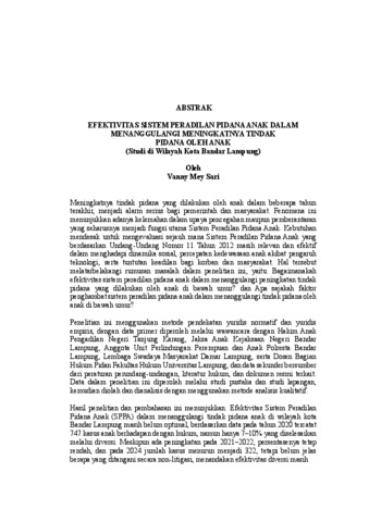 VANNY , MEY SARI (2026) EFEKTIVITAS SISTEM PERADILAN PIDANA ANAK DALAM MENANGGULANGI MENINGKATNYA TINDAK PIDANA OLEH ANAK (Studi di Wilayah Kota Bandar Lampung). FAKULTAS HUKUM, UNIVERSITAS LAMPUNG.