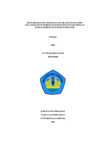Lutfiah , Khasanah (2025) PENGARUH LEVEL PENGGUNAAN SILASE PUCUK TEBU DALAM RANSUM TERHADAP KONSUMSI DAN KECERNAAN BAHAN KERING DAN BAHAN ORGANIK. FAKULTAS PERTANIAN, UNIVERSITAS LAMPUNG.