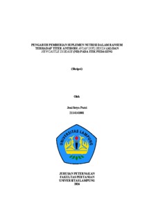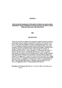 Jeni Setya , Putri (2026) PENGARUH PEMBERIAN SUPLEMEN NUTRISI DALAM RANSUM TERHADAP TITER ANTIBODI AVIAN INFLUENZA (AI) DAN NEWCASTLE DISEASE (ND) PADA ITIK PEDAGING. FAKULTAS PERTANIAN, UNIVERSITAS LAMPUNG.