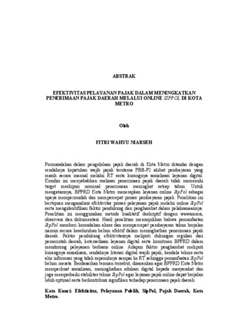 FITRI , WAHYU NIARSEH (2026) EFEKTIVITAS PELAYANAN PAJAK DALAM MENINGKATKAN PENERIMAAN PAJAK DAERAH MELALUI ONLINE SIPPOL DI KOTA METRO. FAKULTAS ILMU SOSIAL DAN ILMU POLITIK, UNIVERSITAS LAMPUNG.