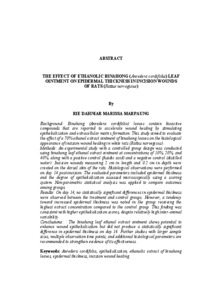 Latar Belakang: Daun binahong (Anredera cordifolia) mengandung senyawa bioaktif yang berpotensi mempercepat penyembuhan luka melalui stimulasi epitelisasi dan pembentukan matriks ekstraseluler. Penelitian ini bertujuan menilai pengaruh salep ekstrak etanol 70% daun binahong terhadap gambaran histologis penyembuhan luka insisi pada tikus putih (Rattus norvegicus). Metode Penelitian eksperimental dengan desain kelompok kontrol dilakukan menggunakan salep ekstrak etanol daun binahong pada konsentrasi 10%, 20%, dan 40%, serta kontrol positif (asam fusidat) dan kontrol negatif (akuades). Luka insisi dibuat pada kulit dorsal tikus dengan panjang 2 cm dan kedalaman 0,2 cm. Pengamatan histologis dilakukan pada hari ke-14 pascainsisi. Parameter yang dinilai meliputi ketebalan epidermis dan tingkat epitelisasi berdasarkan skoring mikroskopis. Analisis statistik non-parametrik digunakan untuk membandingkan hasil antarkelompok. Hasil: Pada hari ke-14, tidak ditemukan perbedaan bermakna secara statistik pada ketebalan epidermis antara kelompok perlakuan dan kontrol. Namun demikian, terdapat kecenderungan peningkatan ketebalan epidermis pada kelompok dengan konsentrasi ekstrak tertinggi dibandingkan kelompok kontrol. Temuan ini sejalan dengan skor epitelisasi yang lebih tinggi, meskipun variabilitas antar hewan relatif besar. Kesimpulan: Salep ekstrak etanol daun binahong menunjukkan potensi dalam meningkatkan proses epitelisasi luka, tetapi belum memberikan perbedaan bermakna terhadap ketebalan epidermis pada hari ke-14. Penelitian lanjutan dengan jumlah sampel lebih besar, waktu observasi beragam, dan parameter histologis tambahan diperlukan untuk memperkuat bukti efektivitasnya. Kata Kunci: Anredera cordifolia, epitelisasi, ekstrak etanol daun binahong, ketebalan epidermis, penyembuhan luka insisi