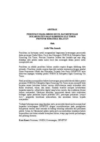 Arifa , Vika Jannah (2026) PERIZINAN USAHA MIKRO KECIL DAN MENENGAH DI KABUPATEN OGAN KOMERING ULU TIMUR PROVINSI SUMATERA SELATAN. FAKULTAS HUKUM, UNIVERSITAS LAMPUNG.