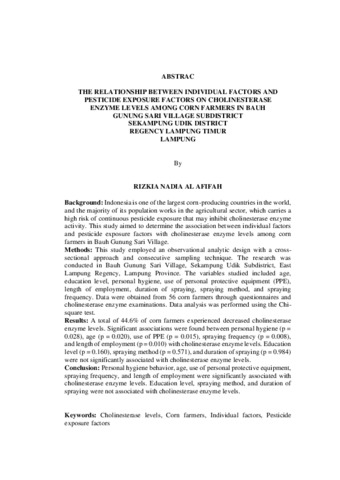 RIZKIA NADIA, AL AFIFAH (2026) HUBUNGAN FAKTOR INDIVIDU DAN FAKTOR PAPARAN PESTISIDA TERHADAP KADAR ENZIM CHOLINESTERASE PADA PETANI JAGUNG DESA BAUH GUNUNG SARI KECAMATAN SEKAMPUNG UDIK KABUPATEN LAMPUNG TIMUR-LAMPUNG. FAKULTAS KEDOKTERAN, UNIVERSITAS LAMPUNG.