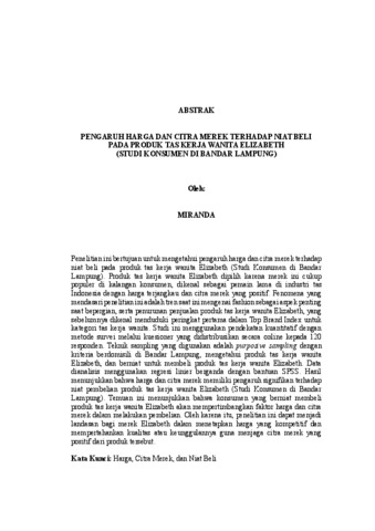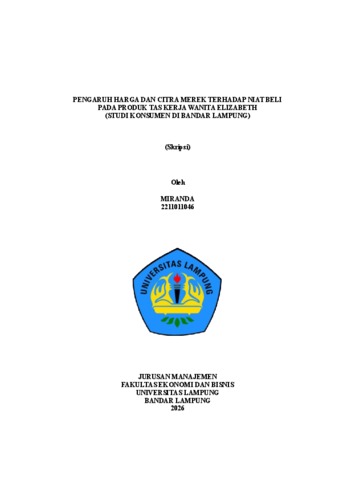 MIRANDA , - (2026) PENGARUH HARGA DAN CITRA MEREK TERHADAP NIAT BELI PADA PRODUK TAS KERJA WANITA ELIZABETH (STUDI KONSUMEN DI BANDAR LAMPUNG). FAKULTAS EKONOMI DAN BISNIS, UNIVERSITAS LAMPUNG.