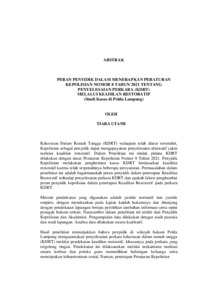 TIARA , UTAMI (2026) PERAN PENYIDIK DALAM MENERAPKAN PERATURAN KEPOLISIAN NOMOR 8 TAHUN 2021 TENTANG PENYELESAIAN PERKARA (KDRT) MELALUI KEADILAN RESTORATIF (Studi Kasus di Polda Lampung). FAKULTAS HUKUM , UNIVERSITAS LAMPUNG.