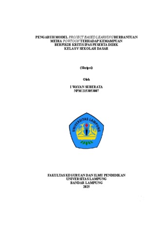 I WAYAN, SUBERATA (2025) PENGARUH MODEL PROJECT BASED LEARNING BERBANTUAN MEDIA POWTOON TERHADAP KEMAMPUAN BERPIKIR KRITIS IPAS PESERTA DIDIK KELAS V SEKOLAH DASAR. FAKULTAS KEGURUAN DAN ILMU PENDIDIKAN, UNIVERSITAS LAMPUNG.