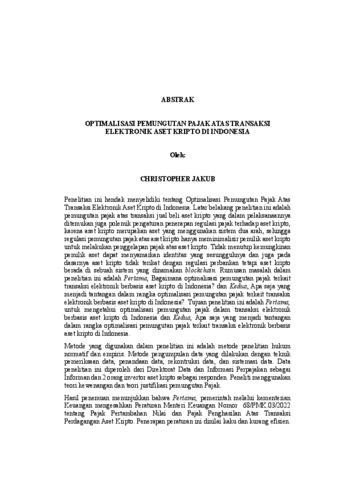 CHRISTOPHER , JAKUB (2026) OPTIMALISASI PEMUNGUTAN PAJAK ATAS TRANSAKSI ELEKTRONIK ASET KRIPTO DI INDONESIA. FAKULTAS HUKUM, UNIVERSITAS LAMPUNG.
