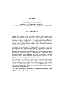 Micho , Malleo Chandra (2026) IMPLEMENTASI SISTEM MERIT DALAM MANAJEMEN KEPEGAWAIAN DI KABUPATEN OGAN KOMERING ULU TIMUR TAHUN 2023-2025 IMPLEMENTASI SISTEM MERIT DALAM MANAJEMEN KEPEGAWAIAN DI KABUPATEN OGAN KOMERING ULU TIMUR TAHUN 2023-2025 IMPLEMENTASI SISTEM MERIT DALAM MANAJEMEN KEPEGAWAIAN DI KABUPATEN OGAN KOMERING ULU TIMUR TAHUN 2023-2025. FAKULTAS HUKUM, UNIVERSITAS LAMPUNG.