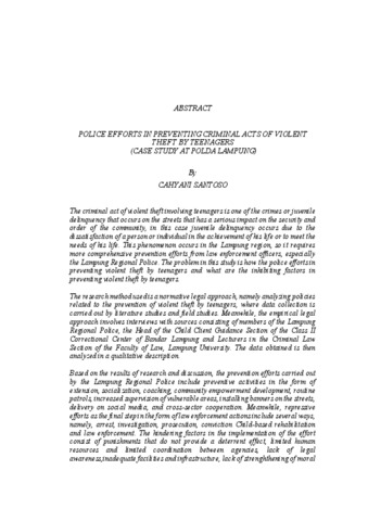Cahyani , Santoso (2026) UPAYA KEPOLISIAN DALAM PENCEGAHAN TINDAK PIDANA PENCURIAN DENGAN KEKERASAN OLEH REMAJA (STUDI KASUS PADA POLDA LAMPUNG). FAKULTAS HUKUM, UNIVERSITAS LAMPUNG.